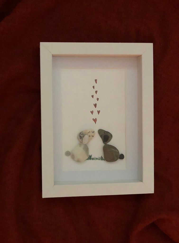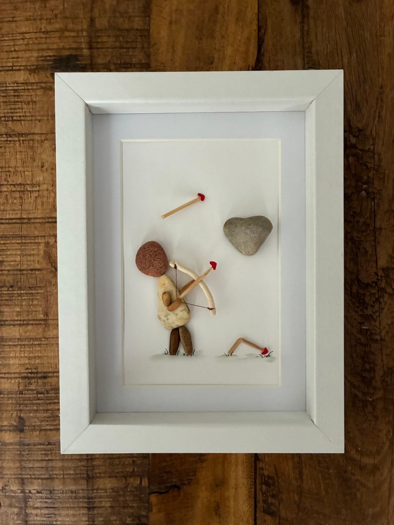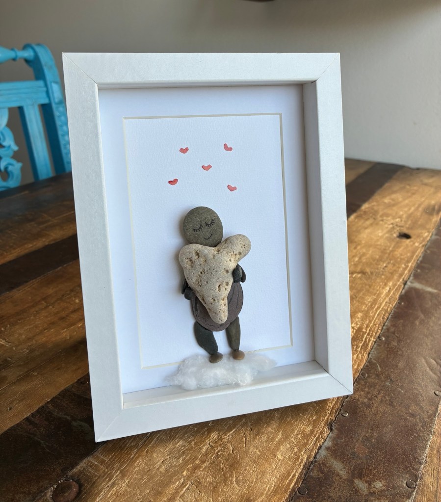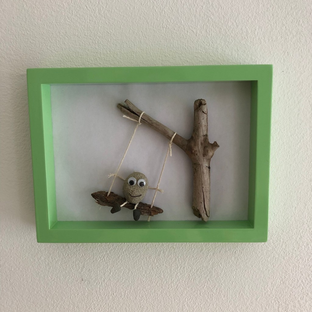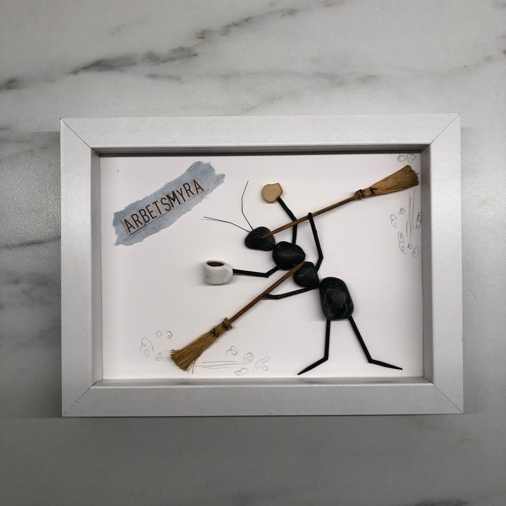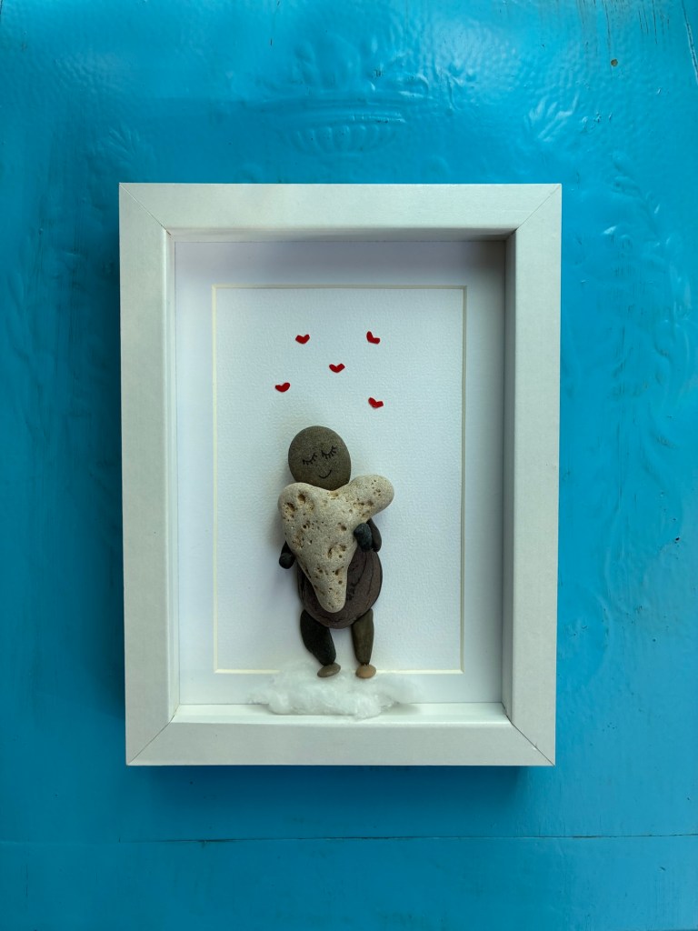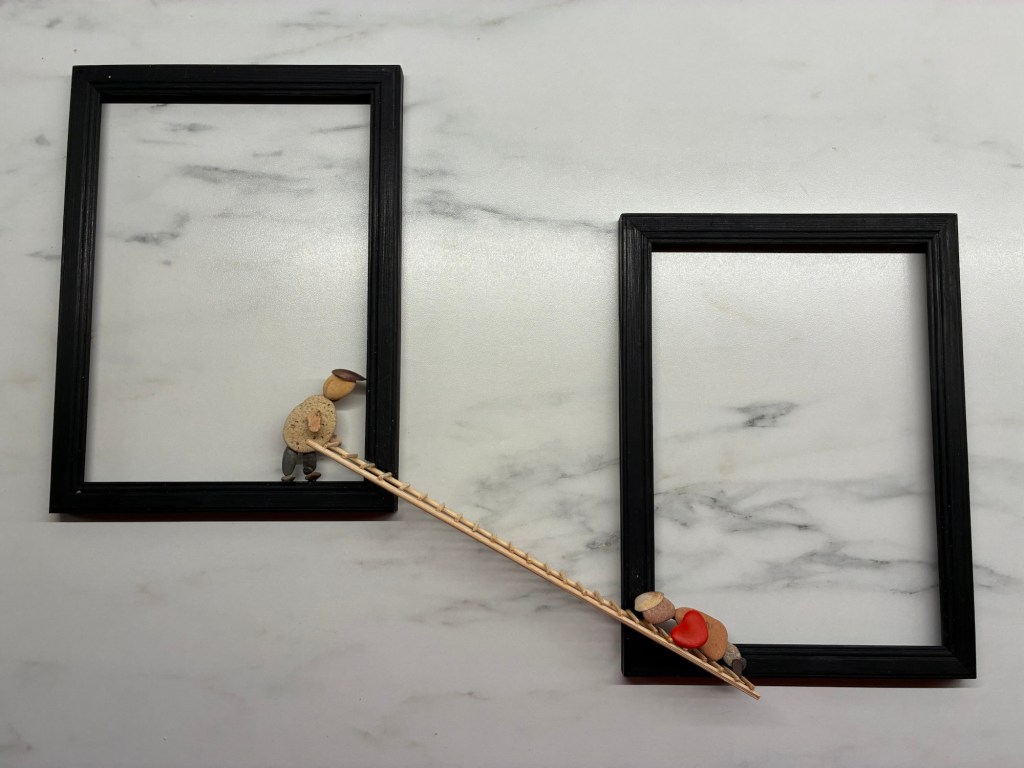 Två ramar blir en tavla. Figurerna är gjorda av sten