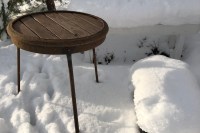 Cafébord av järnringar,järnrör och trä Höjd 73 cm Bredd bordsskiva 56 cm Benbredd 65 cm 1895kr