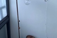 Golvlampa gjord av rör och lock från oljefat Mått i cm: H 150 B 55 Pris: 3495 kr